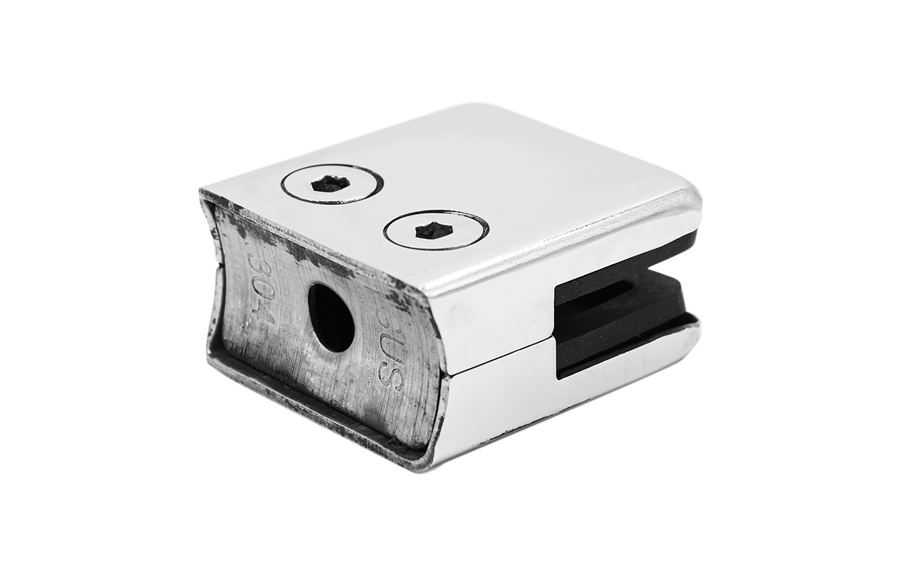 Стеклодержатель штампованный под стекло 8 мм (4+4 мм), под стойку Ø38.1 мм 40х24х55, полированный (AISI 304) k038 купить в Уфе
