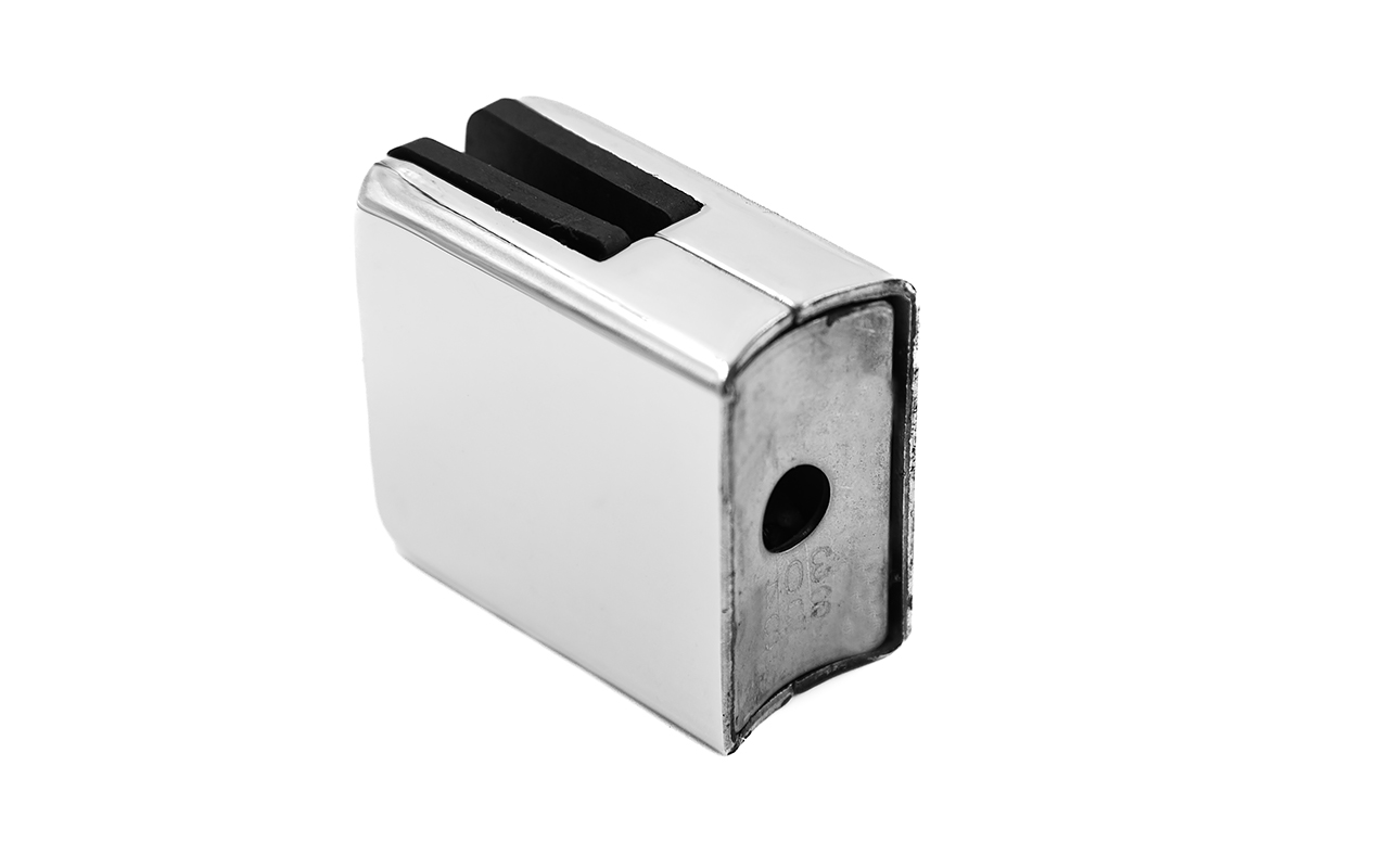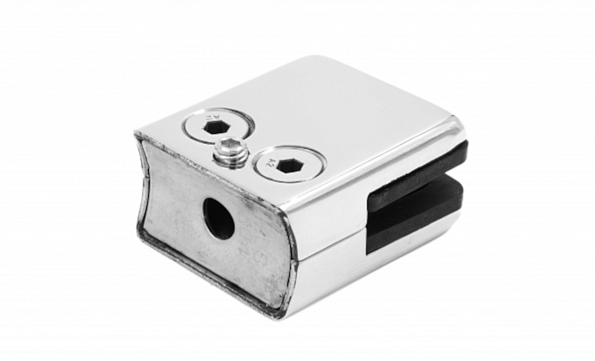 Стеклодержатель штампованный под стекло 8 мм (4+4 мм), под стойку Ø38.1 мм 40х24х55, полированный (AISI 304) k038 купить в Уфе