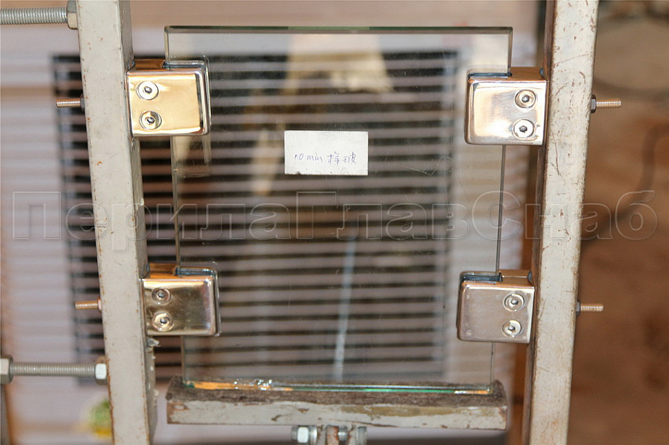 2. Либо вваривают шпильку с резьбой М6 и закрепляют первую половину стеклодержателя на стойке, стягивая гайкой. Вторая часть стеклодержателя присоединяется к первой входящими в комплект специальными винтами под шестигранный ключ. В этот момент стекло зажимается между двумя половинками детали специальными высокотехнологичными уплотнителями из EPDM.