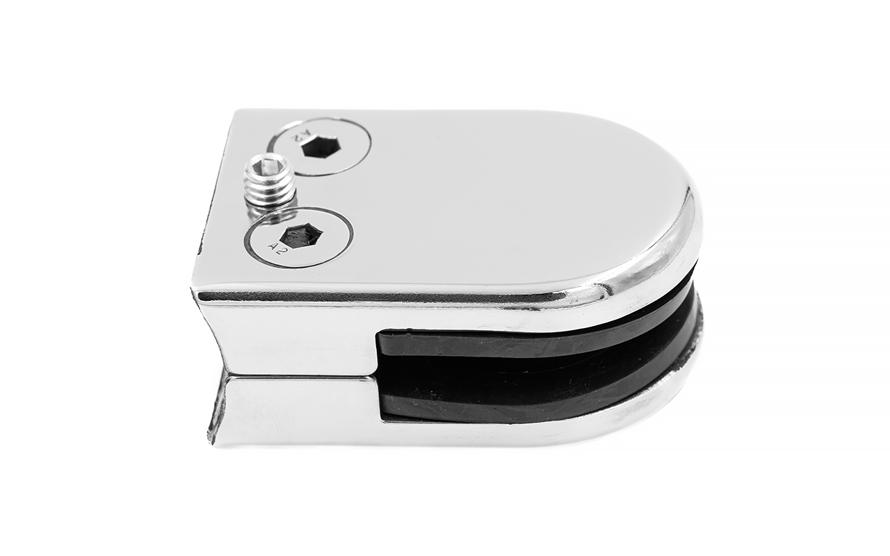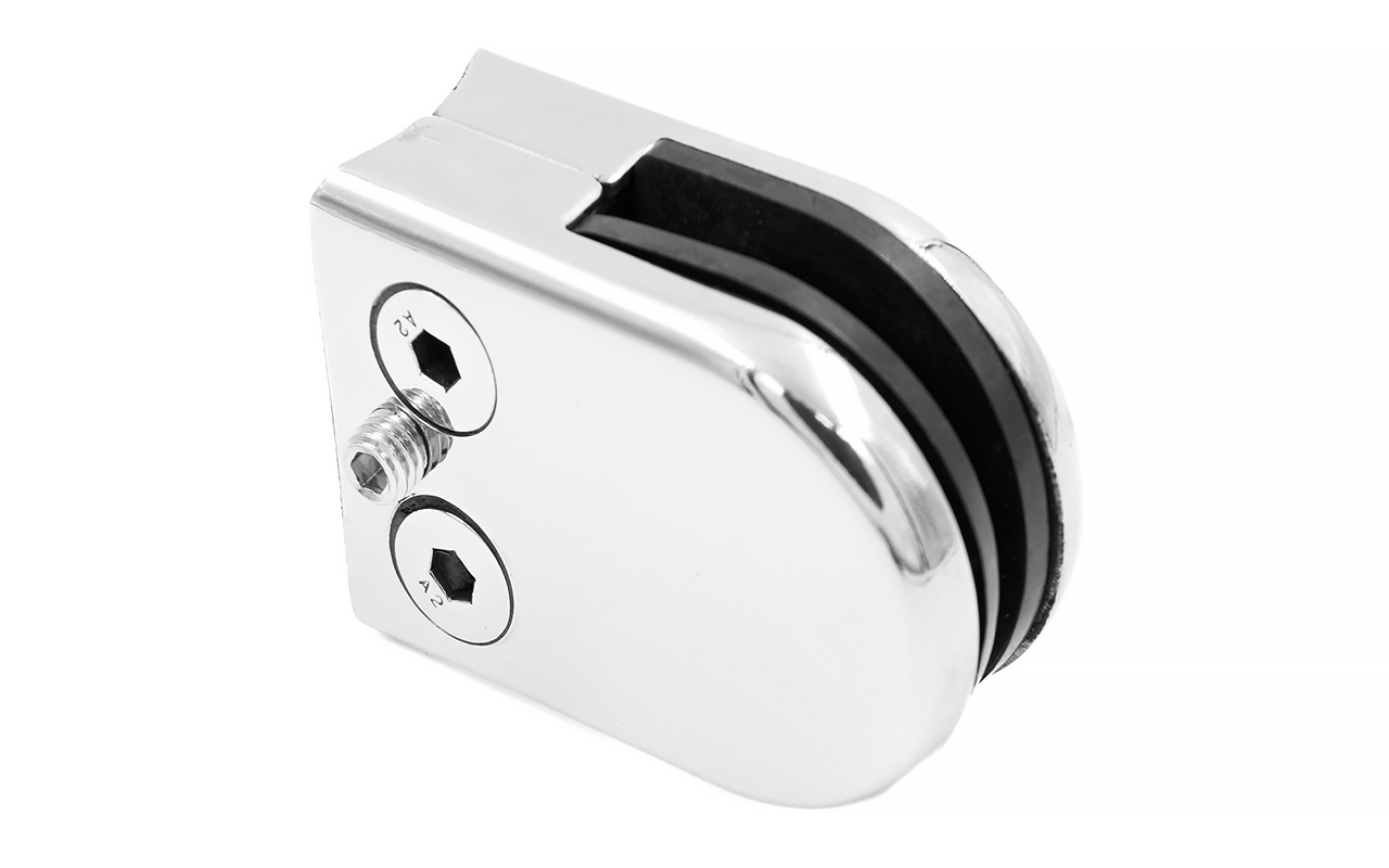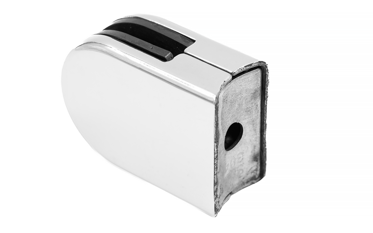 Стеклодержатель штампованный под стекло 10 мм (5+5 мм), под стойку Ø38.1 мм (39х24х55), полированный (AISI 304) k538-10