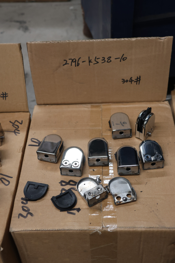 k538-10 стеклодержатель штампованный под стекло 10 мм, под стойку Ø38.1 мм (39х24х55), полированный, AISI 304