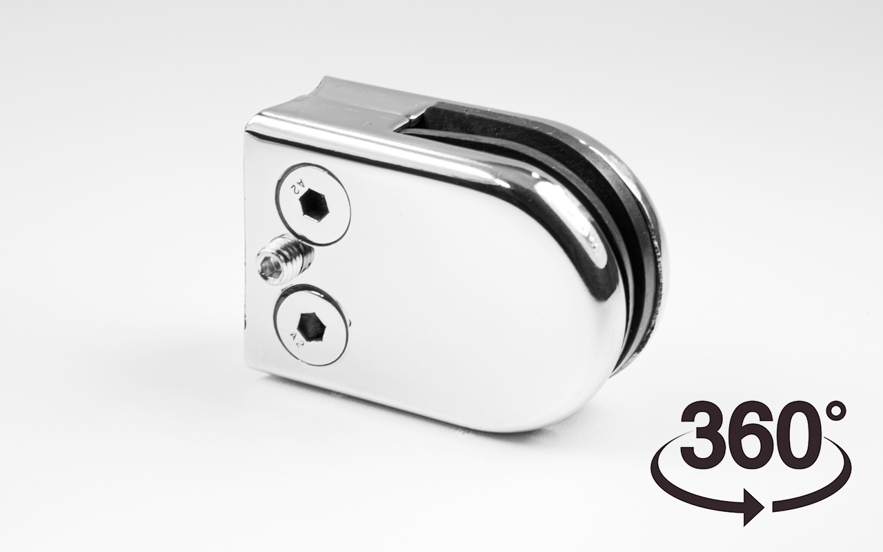 спроектирован и разработан для быстрого монтажа ограждений со стеклом толщиной 10 мм в расчете на сварку корпуса стеклодержателя со стойкой.