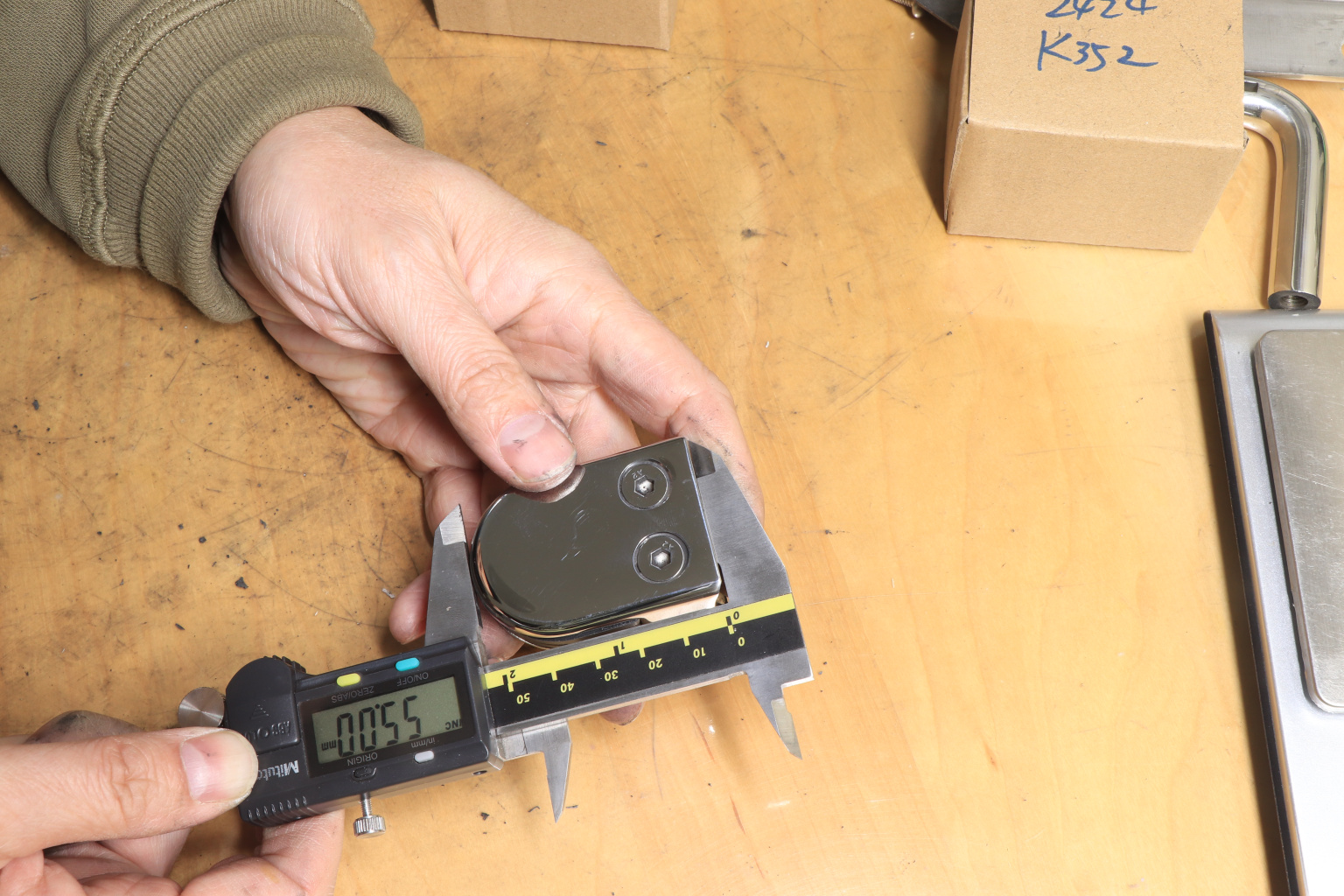 Стеклодержатель штампованный под стекло 8 мм (4+4 мм), под стойку Ø38.1 мм 40х24х55, полированный. Марка стали - AISI 304