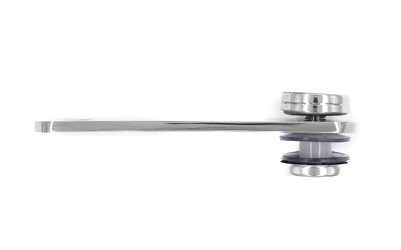 Стеклодержатель Ø50х10х18, шпилька М16х205 мм, для стекла 8-40 мм, AISI (201), с возможностью регулировки выноса до 65 мм, для торцевого крепления стекла, полированный, литой k277-3 купить в Уфе