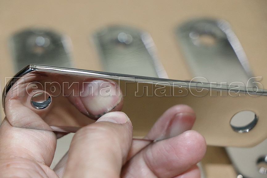 Стеклодержатель пластинчатый штампованный 3хМ8, по центрам 170х4 мм, полированный, шайбы 4 мм штамп., под стекло 6-12 AISI201 k047-6 купить в Уфе