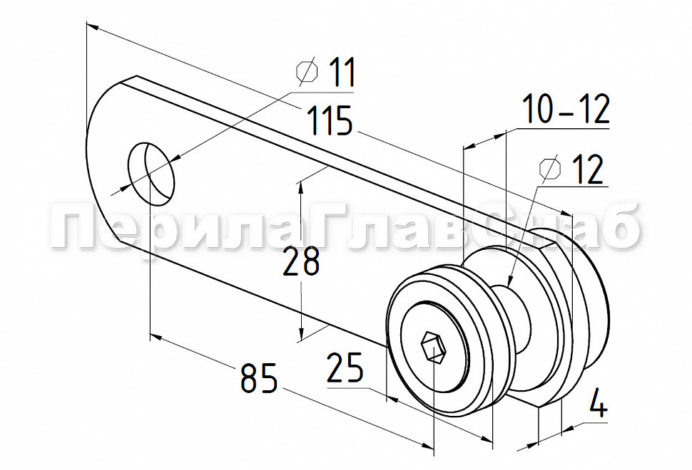 по центрам 85 мм, толщина 5 мм, ширина 30 мм, под стекло 6-12 мм k940-5.0 шестигранник ULTRA поштучно 5.0 мм