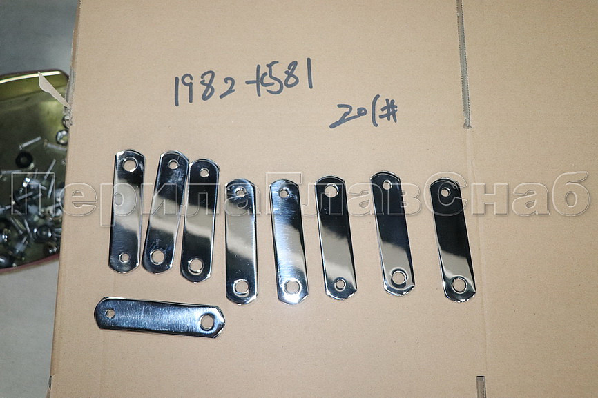 Стеклодержатель пластинчатый штампованный 3хМ8, по центрам 170х4 мм, полированный, шайбы 4 мм штамп., под стекло 6-12 AISI201 k047-6