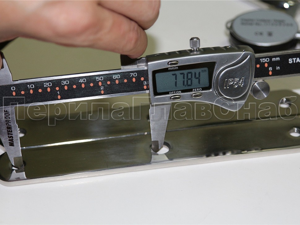 Стеклодержатель пластинчатый 3хМ8, по центрам 170х5 мм, полированный, шайбы 5 мм штамп., под стекло 6-12 мм, AISI 316 k023-8 купить в Уфе