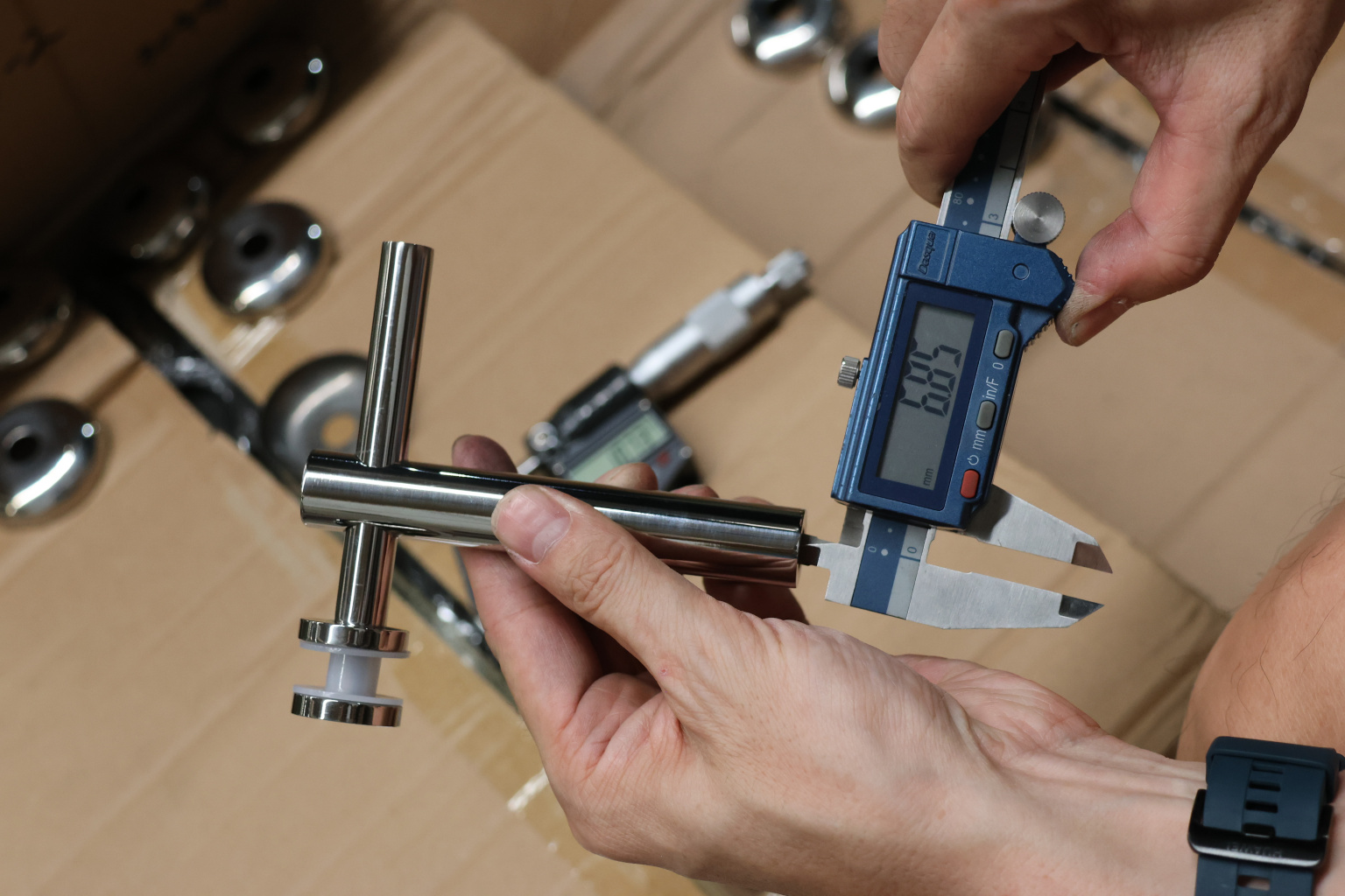 Наконечник палец на стойку Ø50.8х1.5 мм с регулируемым ложементом под поручень Ø50.8 мм, литой, полированный, нержавеющий AISI 304 k042 купить в Уфе