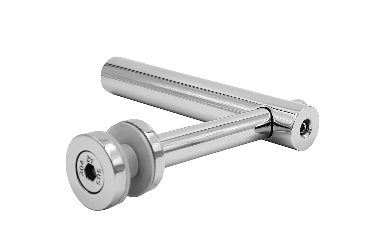 Для зажима более толстого стекла, достаточно заменить штатные винты стеклодержателя на увеличенные по длине аналоги с плоской головкой и резьбой М8. Стекло устанавливается между плоскими стойками, которые наиболее часто встречаются именно в крупных объектах — это торговые и развлекательные центры, офисные и бизнес-центры. Благодаря наличию регулировки, вынос стекла относительно оси стойки может доходить до 60 мм.