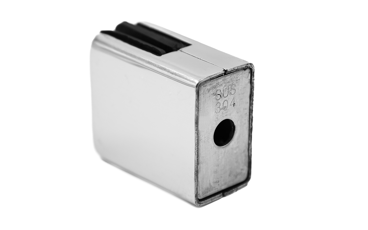 Спроектирован и разработан для быстрого монтажа ограждений со стеклом толщиной 8 мм на плоскую поверхность. Производится со специальным установочным отверстием и утолщенными краями, что позволяет монтировать его на самосборных ограждениях и на сварку.