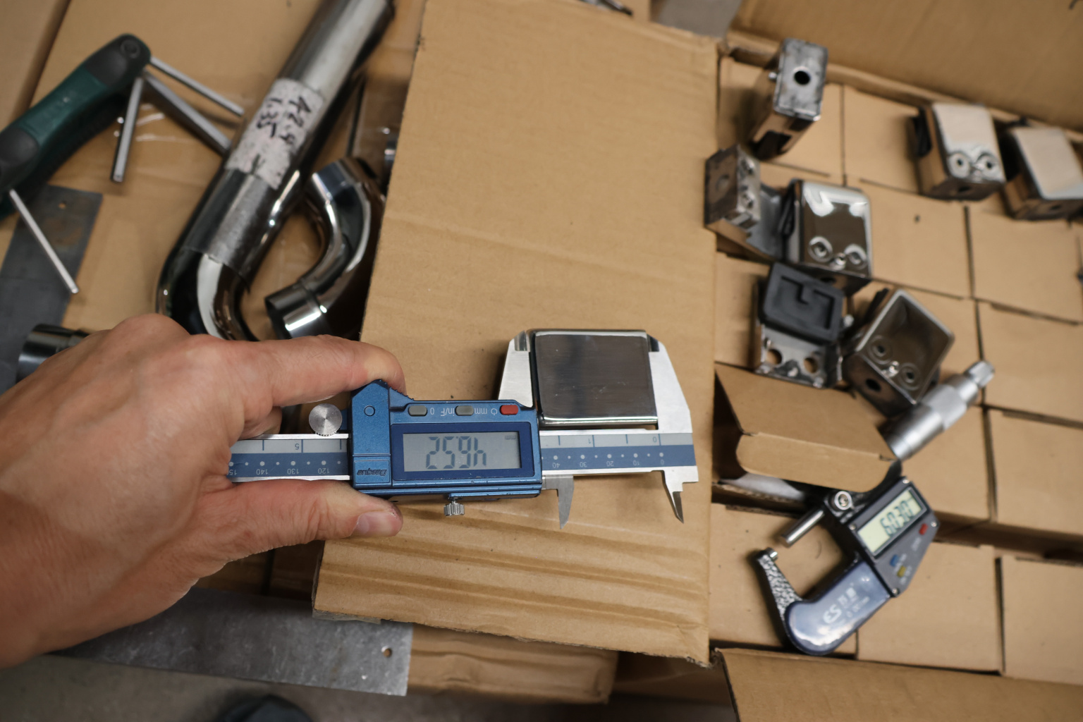Наконечник на стойку из профильной трубы 40х40 мм, с регулируемым ложементом под плоскость, литой, полированный, нержавеющий AISI 304 k222-3 купить в Уфе