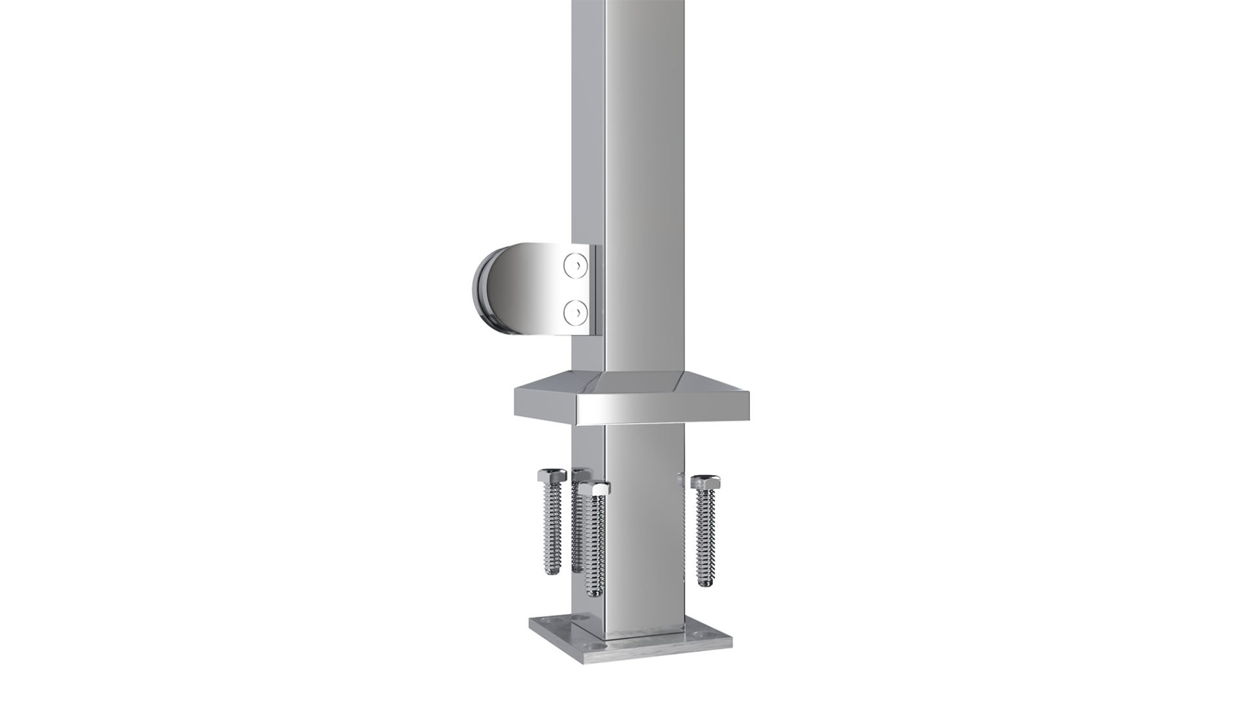 Стойка с торцевым креплением на фланцах, 60*60*1100 мм, с пластиной, для стекла 8-20 мм, шлифованная, AISI 304 k793