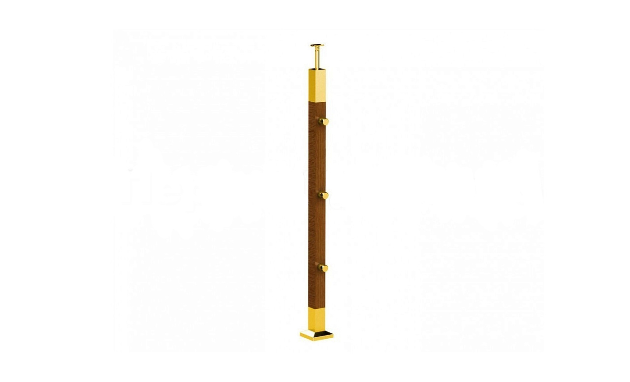 Готовая стойка 40х40х950 мм, деревянная, со вставками из нержавеющей стали 2х100 мм с 2 пластинчатыми стеклодержателями, под золото k740-2-G купить в Уфе