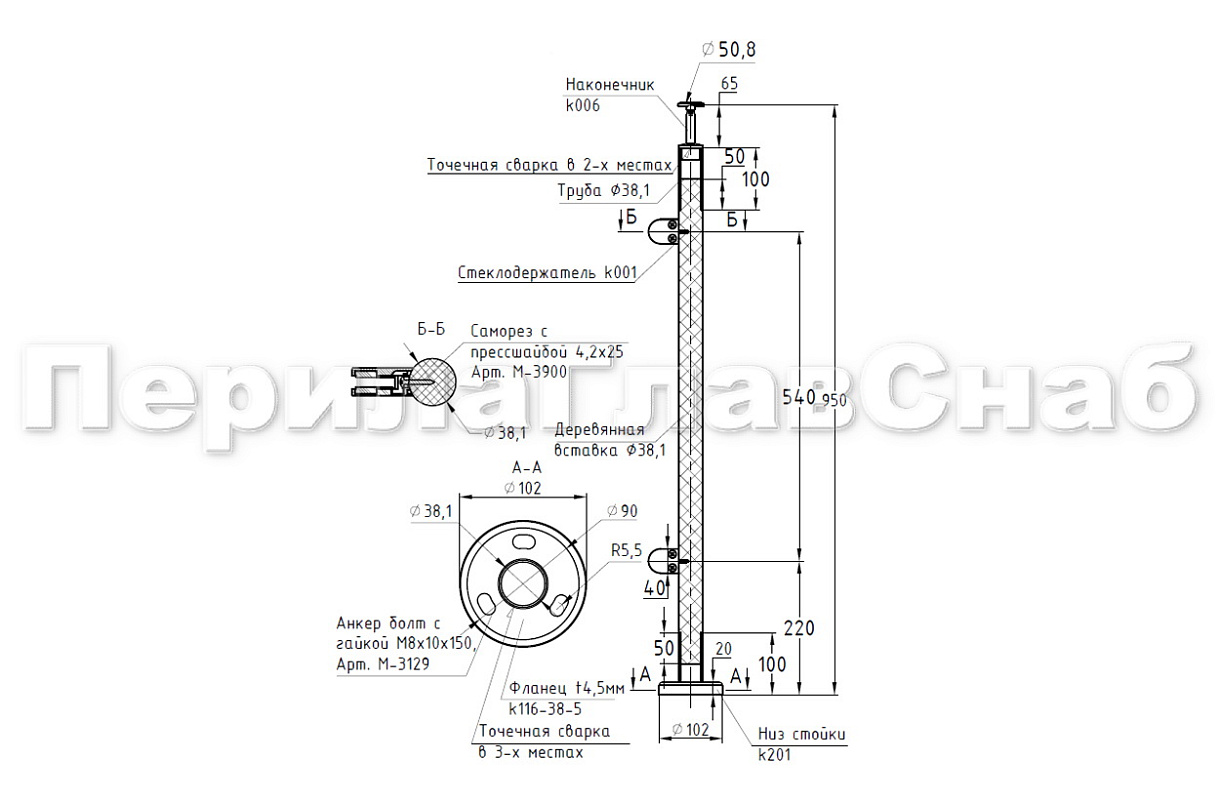 Готовые стойки – это экономия Вашего времени и денег. Приобретая готовую стойку Вы можете собрать ограждение сами, не привлекая монтажную бригаду и экономя денежные средства на монтаже. Стойка легко монтируется к полу благодаря треханкернуму фланцу с отверстиями под анкер-болт М8 ( М-3129М-3843М-3838) или шпильку ( М-3959М-3969)  комплекте с хим анкером Ф-0799  или Ф-0800 , а крепеж скрывает декоративная крышка идущая в комплекте стойки. Поручень из нержавеющей стали  можно закрепить при помощи самореза ( М-3850М-3847М-3215), либо при помощи заклепки ( М-3214) и винта М6 ( М-3973) что на порядок эффективней, для крепления при помощи заклепок необходимо растачивать отверстие в ложементе. Если вы используете пластиковый ( k893k897k892k891k894k895k899) или деревянный поручень, то его можно закрепить при помощи саморезов ( М-3217, М-3850М-3215). После покраски дубовой проставки подклеиваете клеем ( Ф-1127, Ф-1105 ). Стекло заказывается после установки стоек и снятия размеров. После того, как стекло готово к установке, при помощи шестигранника ( k931k932) разъединяете стеклодержатель, надеваете стекло и закручиваете обратно.
