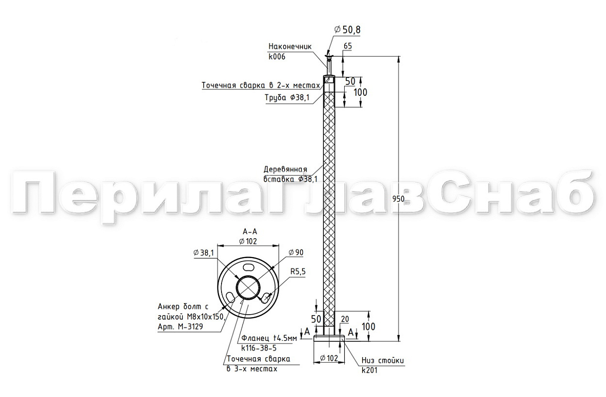 Готовые стойки – это экономия Вашего времени и денег. Приобретая готовую стойку Вы можете собрать ограждение сами, не привлекая монтажную бригаду и экономя денежные средства на монтаже. Стойка легко монтируется к полу благодаря треханкернуму фланцу с отверстиями под анкер-болт М8 ( , , ) или шпильку ( ; ) комплекте с хим анкером или , а крепеж скрывает декоративная крышка идущая в комплекте стойки. Поручень из нержавеющей стали можно закрепить при помощи самореза (, , ), либо при помощи заклепки () и винта М6 (М-3973) что на порядок эффективней, для крепления при помощи заклепок необходимо растачивать отверстие в ложементе. Если вы используете пластиковый (, , , , , , ) или деревянный поручень, то его можно закрепить при помощи саморезов ( , , ). После покраски дубовой проставки подклеиваете клеем ( , ). Ограждение готово!