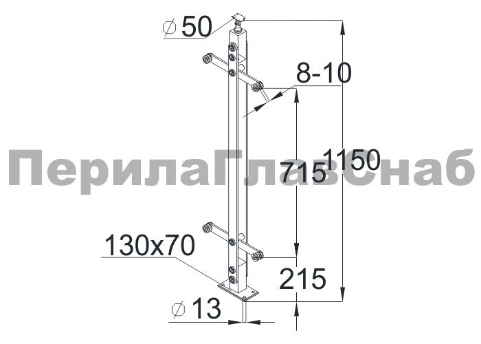 Стойка эксклюзивная из двух пластин с двумя пластинчатыми стеклодержателями, крепление в пол, регулируемый ложемент (aisi 304)