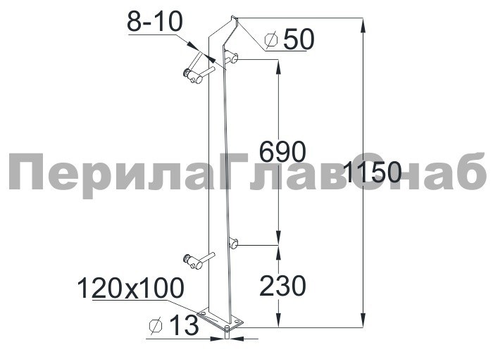 Готовая стойка 40х40х950 мм, деревянная, со вставками из нержавеющей стали 2х100 мм с 3 ригеледержателями k740-1-G купить в Уфе