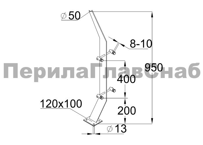 Готовая стойка 40х40х950 мм, деревянная, со вставками из нержавеющей стали 2х100 мм с 3 ригеледержателями k740-1-G купить в Уфе