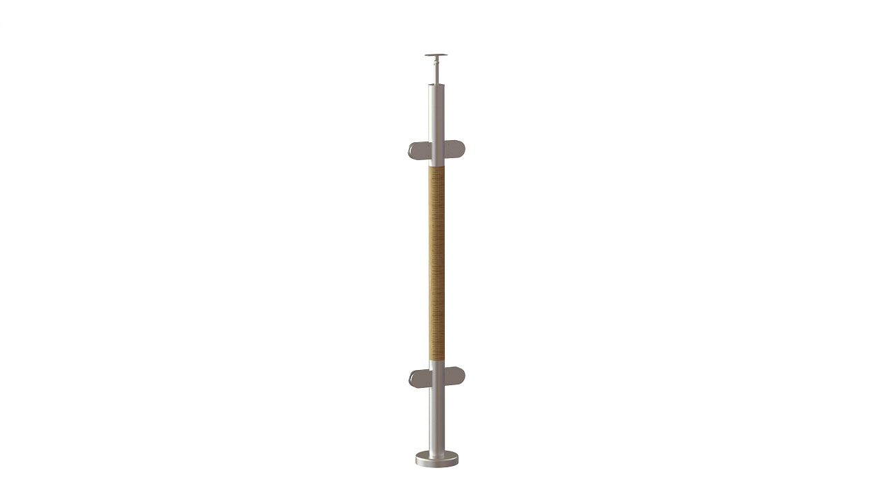Готовая стойка Ø38,1х950 мм деревянная, со вставками из нержавеющей стали 2х100 мм с 4 стеклодержателями k741-3
