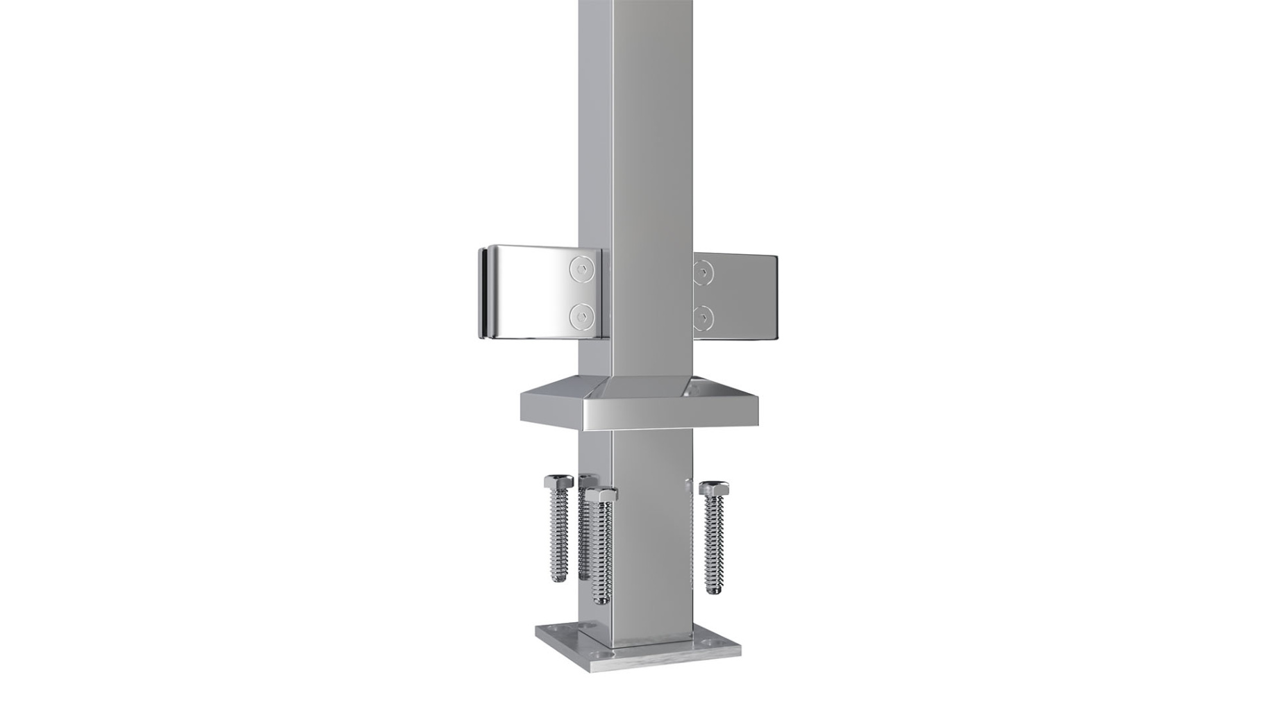 Стойка с торцевым креплением на фланцах, 60*60*1100 мм, с пластиной, для стекла 8-20 мм, шлифованная, AISI 304 k793