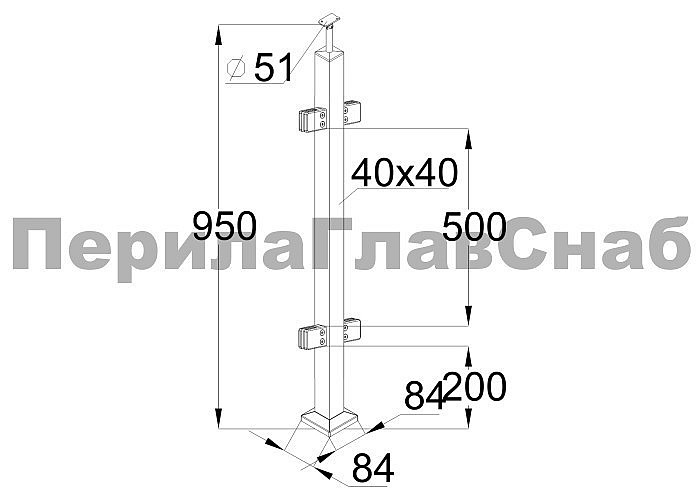 Стойка квадратная 40х40: 4 литых стеклодержателя, шлифованная, высота 950 мм AISI 304 k746-7 купить в Уфе