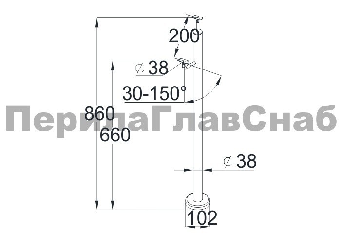 Cтойка для пандуса: под 2 поручня Ø38.1 мм для инвалидов, с наконечником, полированная, высота 860 мм (AISI 304)