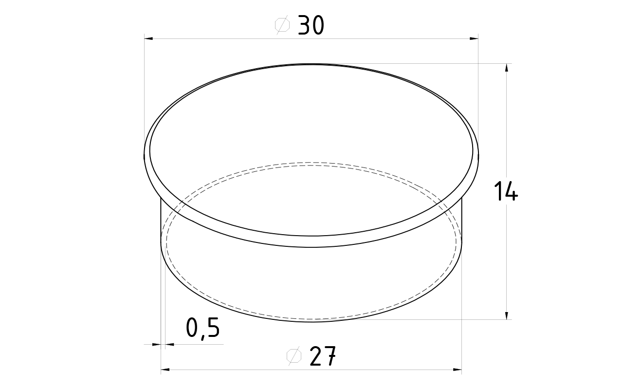 Заглушка штампованная Ø30, 0,5 мм, для трубы 1-1,2 мм, полированная, AISI 304 k036-30
