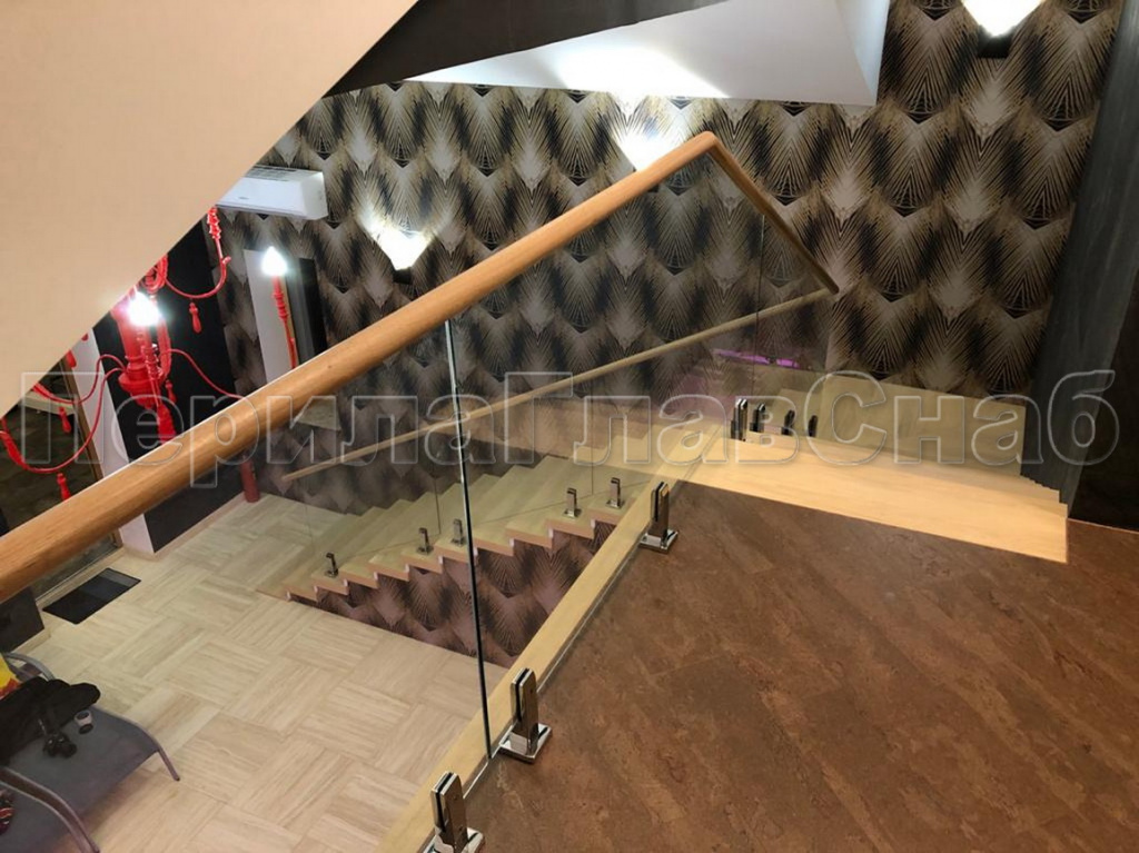 Конструктив:  дубовые  перила на калёном  стекле  10 мм, с  министойками