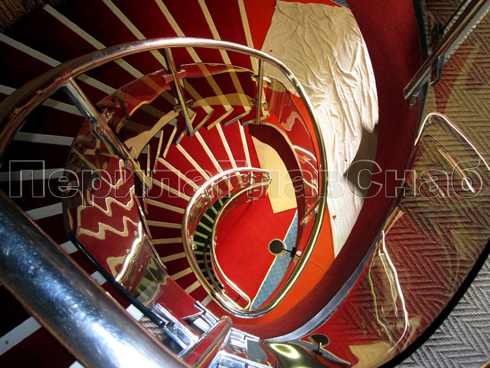 На корабле были установлены лестницы их нержавеющей стали с облицовкой ступеней, ограждения и перила, стеклянные двери и стены, а также уникальные работы по облицовке нержавейкой всех стен и поверхностей кубриков и камбуза.