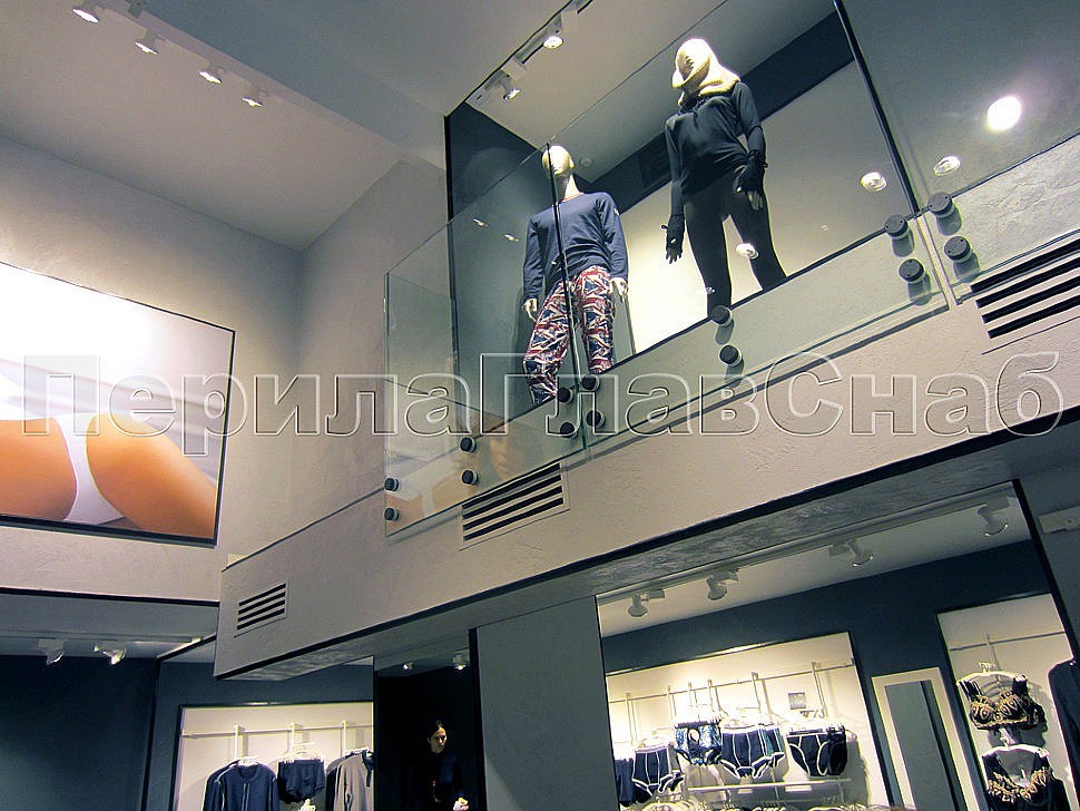 В центральном магазине женского белья итальянского бренда «Intimissimi» было смонтировано ограждение со стеклом галереи второго этажа салона.