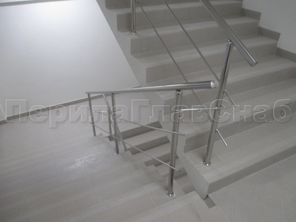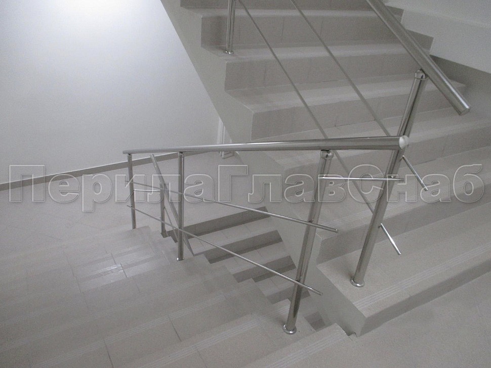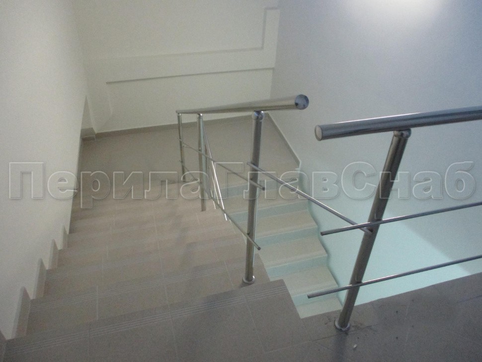 Нержавеющее 2-х ригельное ограждение маршевой лестницы в административном здании.