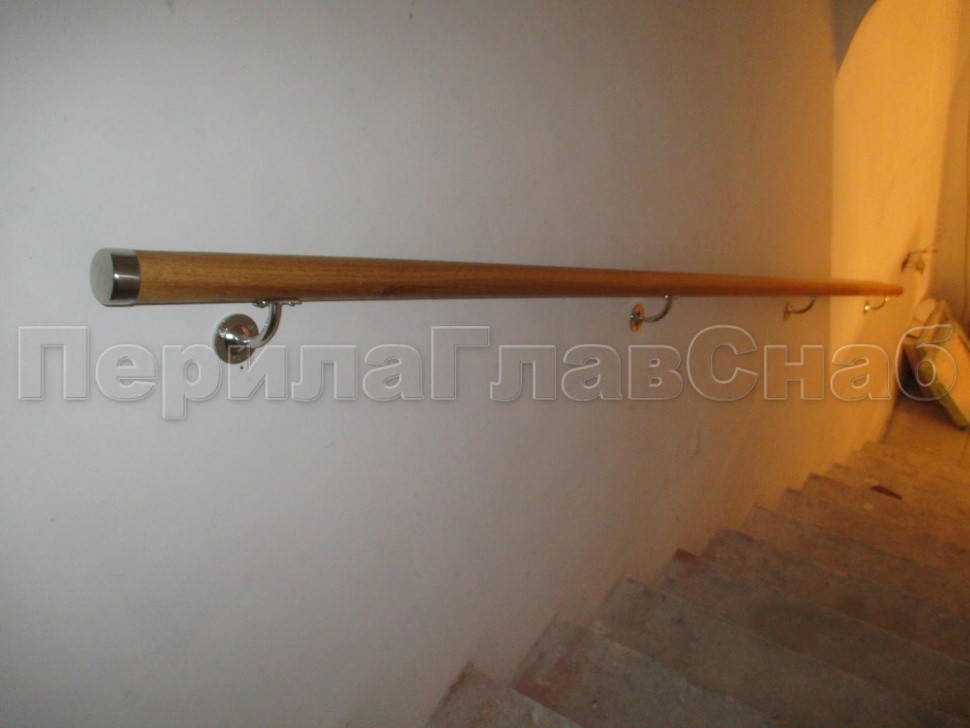 Кроме ограждения лестницы также были изготовлены и установлены дубовые пристенные поручни.