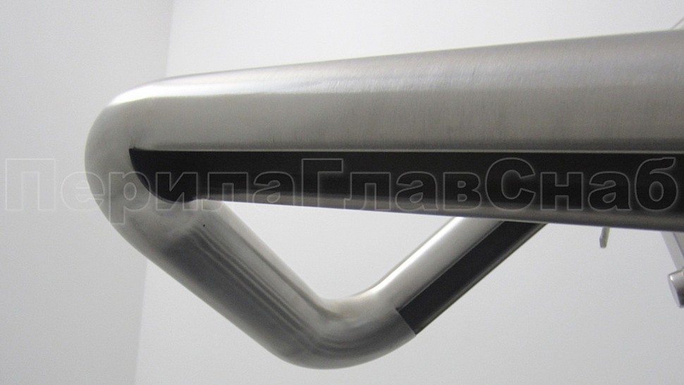 Окончание поручня заглушка. Уход поручня через фланец в стену. Поручень завязан.