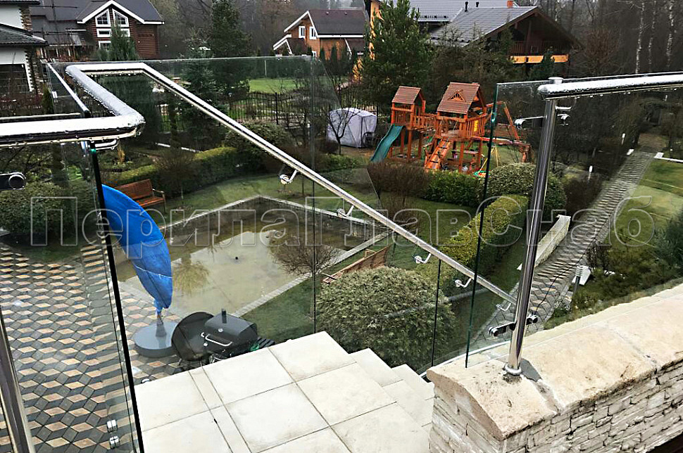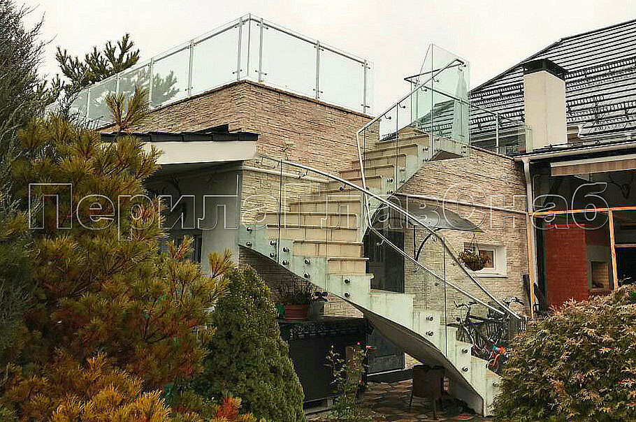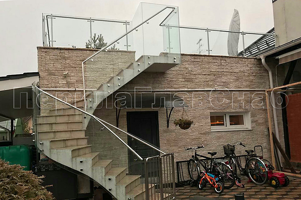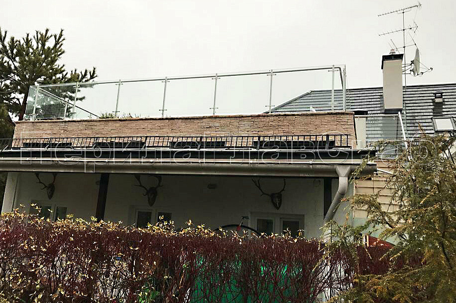 Что бы попасть на уличную террасу с первого на второй этаж, к нам обратились за помощью в установке стеклянных ограждений на лестницу. Наша визуализация, сделанная специально для заказчика помогла ему определиться какие ограждения лучше выбрать. Перед установкой стеклянных ограждений мы приезжали на замер стекол тахеометром. Калитка при входе на лестницу, изготовленная из нержавеющей стали, позволяет закрыть вход на лестницу, ее часто дополнительно заказывают когда есть домашние животные в доме. Зазор между парапетом и стеклами на кровле специально сделан для того, чтобы вода во время осадков сходила вниз. Особенно это актуально в весеннее время таяния снега.