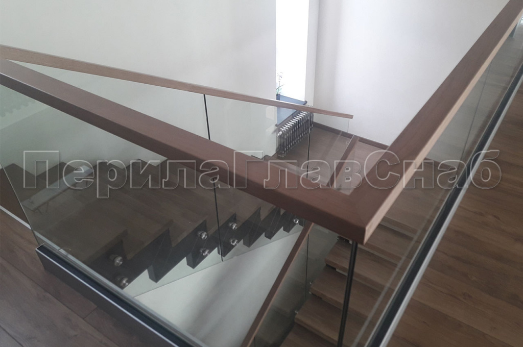 При завершении строительства дома, перед заказчиком встал вопрос о выборе ограждений в частный дом, находящийся в коттеджном поселке «АРТЭК». С просьбой помочь в выборе ограждений, в нашу компанию обратился непосредственно сам заказчик. Основным пожеланием заказчика было: ограждения должны быть прозрачными и в то же время безопасными. Мы предложили изготовить и смонтировать Цельностеклянные ограждения. Ограждение второго света имели следующий конструктив. Алюминиевый анодированный профиль, закаленное стекло толщиной 10мм с евро кромкой. Сверху на стекло был установлен поручень из массива дуба с пазом на стекло по индивидуальному размеру 60*40мм. Покраску поручня мы рекомендовали заказчику осуществить в той же компании, которая изготавливала декоративную деревянную отделку балками торца второго света.   На лестницу установили закаленное стекло толщиной 10мм, крепление стекла к косоуру лестницы было выполнено с помощью точечных креплений из шлифованной нержавеющей стали. В процессе монтажа ограждений у заказчика возникла потребность в изготовлении цельностеклянной перегородки. Так как наш профиль не ограничен одними лишь перилами, мы предложили свои услуги по установке цельностеклянной перегородки что сэкономило время и бюджет заказчика. Перегородка была выполнена из закаленного стекла толщиной 12 мм. Стекло крепилось через зажимной профиль в пол и потолок, в потолке предварительно была установлена закладная, для надежного крепления профиля. Так как полы были с подогревом, нам понадобилась схема укладки теплого пола, для того чтобы избежать повреждения кабеля нагрева при монтаже профиля. Работы по изготовлению и монтажу сорока метров погонных ограждений под ключ, были выполнены в течении двадцати пяти рабочих дней. В целом ограждения получились визуально легкими и зрительно не отягощали конструкцию лестницы.