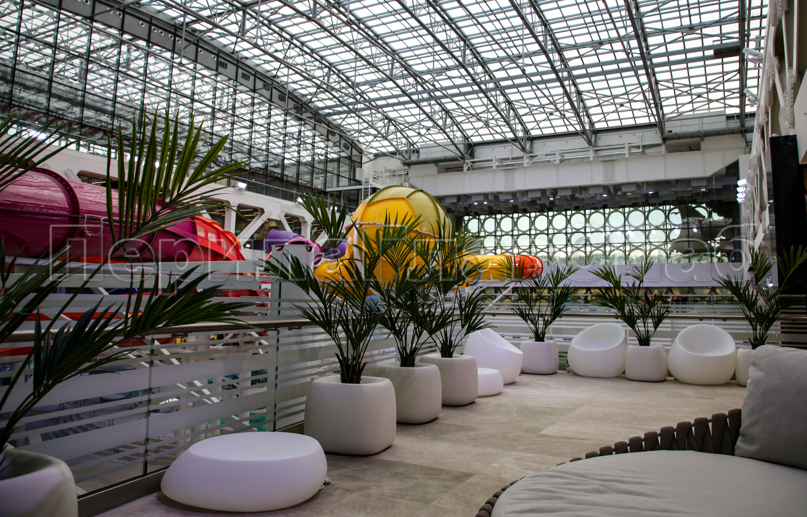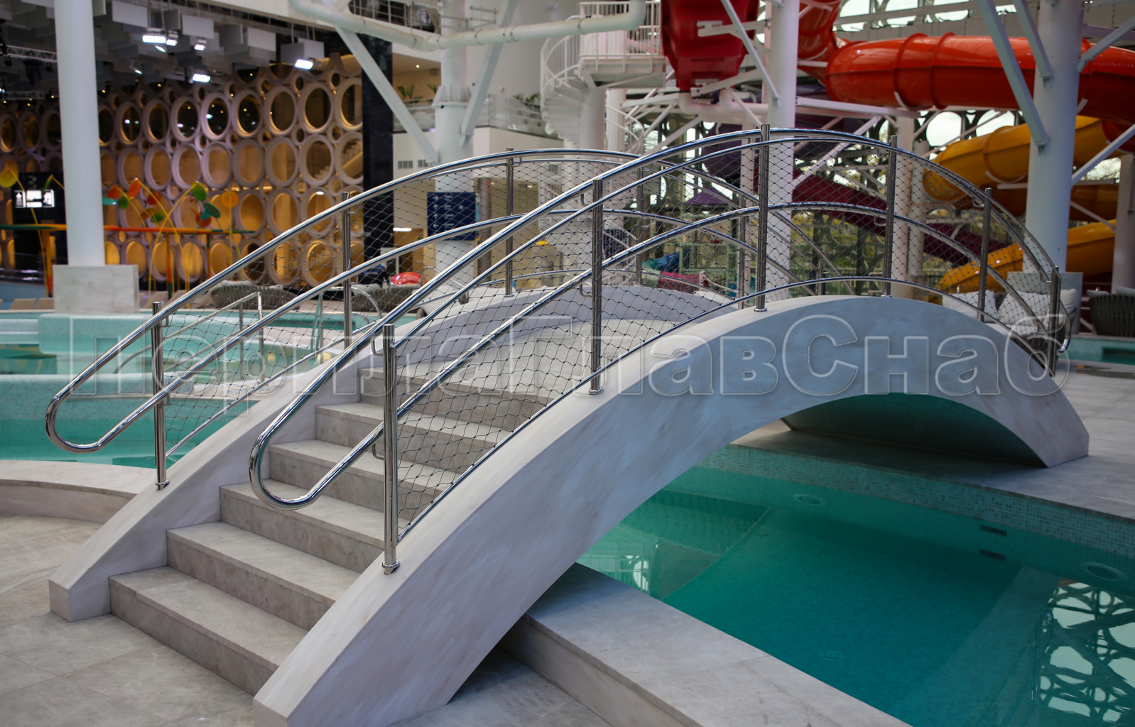 2) Ограждения и поручни должны быть безопасными и антивандальными в связи с тем, что на данном объекте ожидается большое количество посетителей разных возрастов, вместимость Аквакомплекса 10 000 человек.