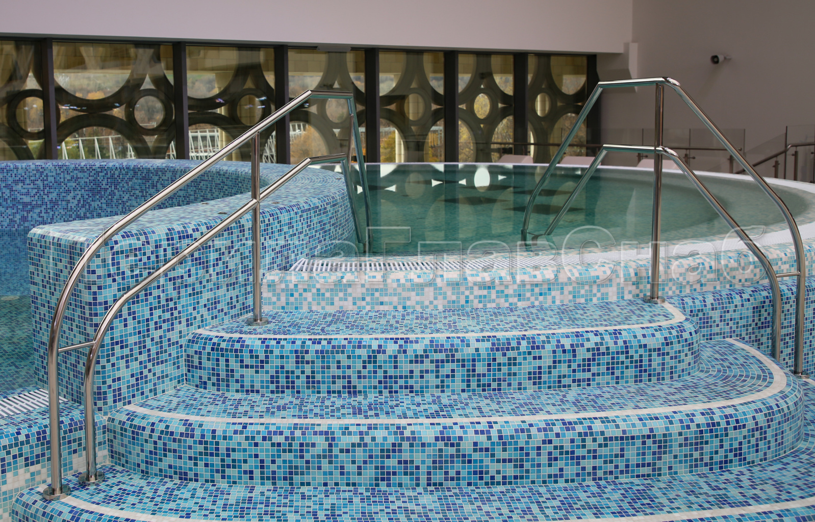 1) Поручни и ограждения должны быть выполнены из высоко коррозионно-устойчивого материала, так как контактируют с агрессивной средой-хлорированной водой.