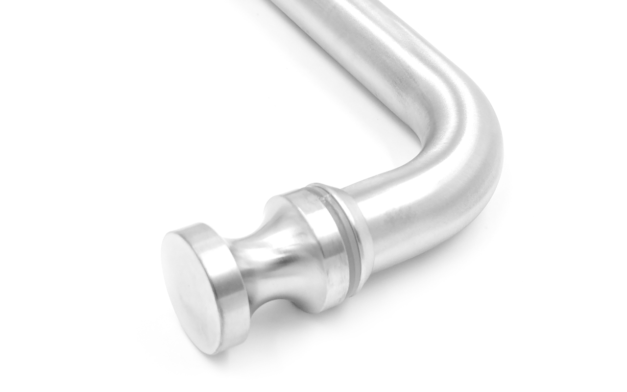 Дверная ручка с кнобом для стекла 8-10 мм, 19х201 мм, отверстие 12 мм, шлифованная, марка стали- AISI 304