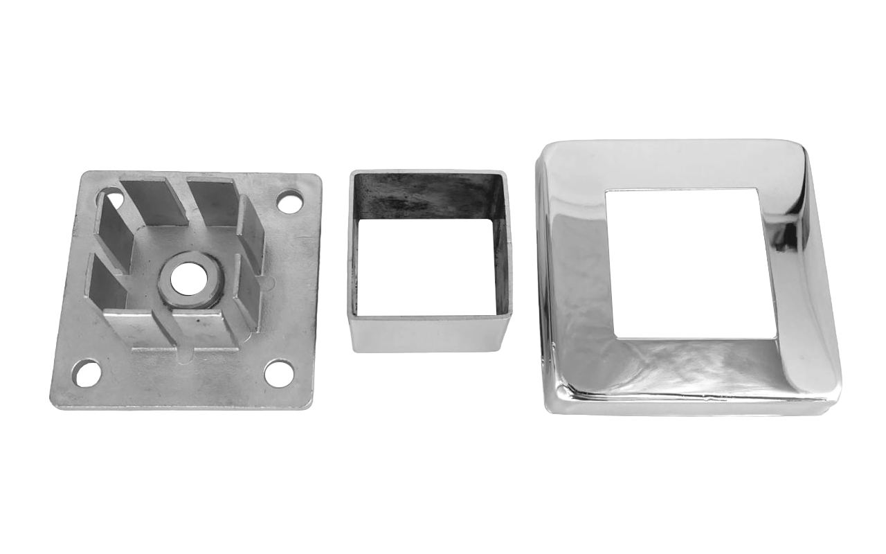 Фланец для трубы 40х40, литой, закладная под стойку, AISI 304 k350
