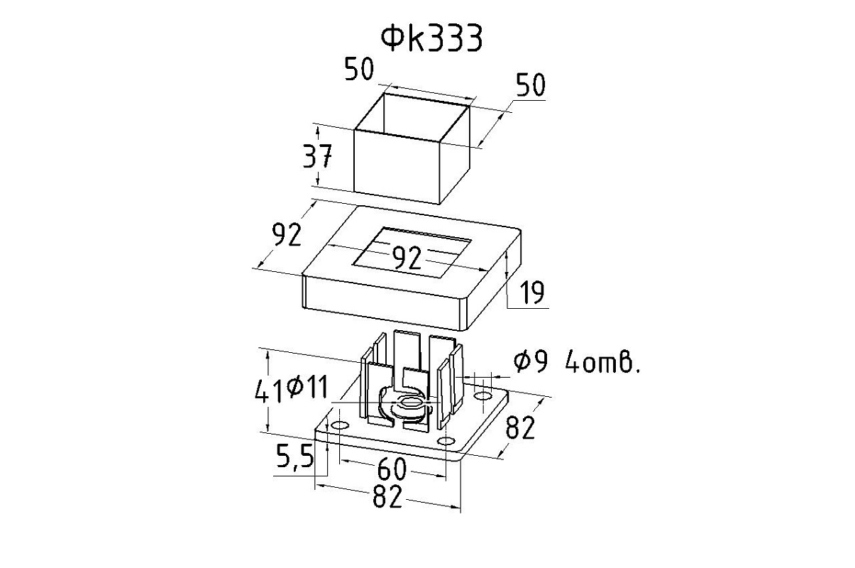 Деталь для крепления стоек из трубы 40х40 мм (k808, k866). Фиксируют через саморез сквозь лепестки основания цанги или подваривают. Для самосборных ограждений в данном случае наконечником может быть k222или k239.