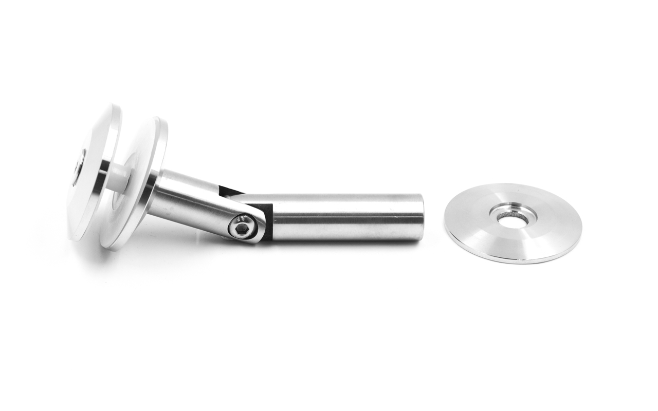 предназначен для крепления стекла к стене путем монтажа детали на шпильку М12 в стену и последующим креплением стекла от 10 до 20мм.
