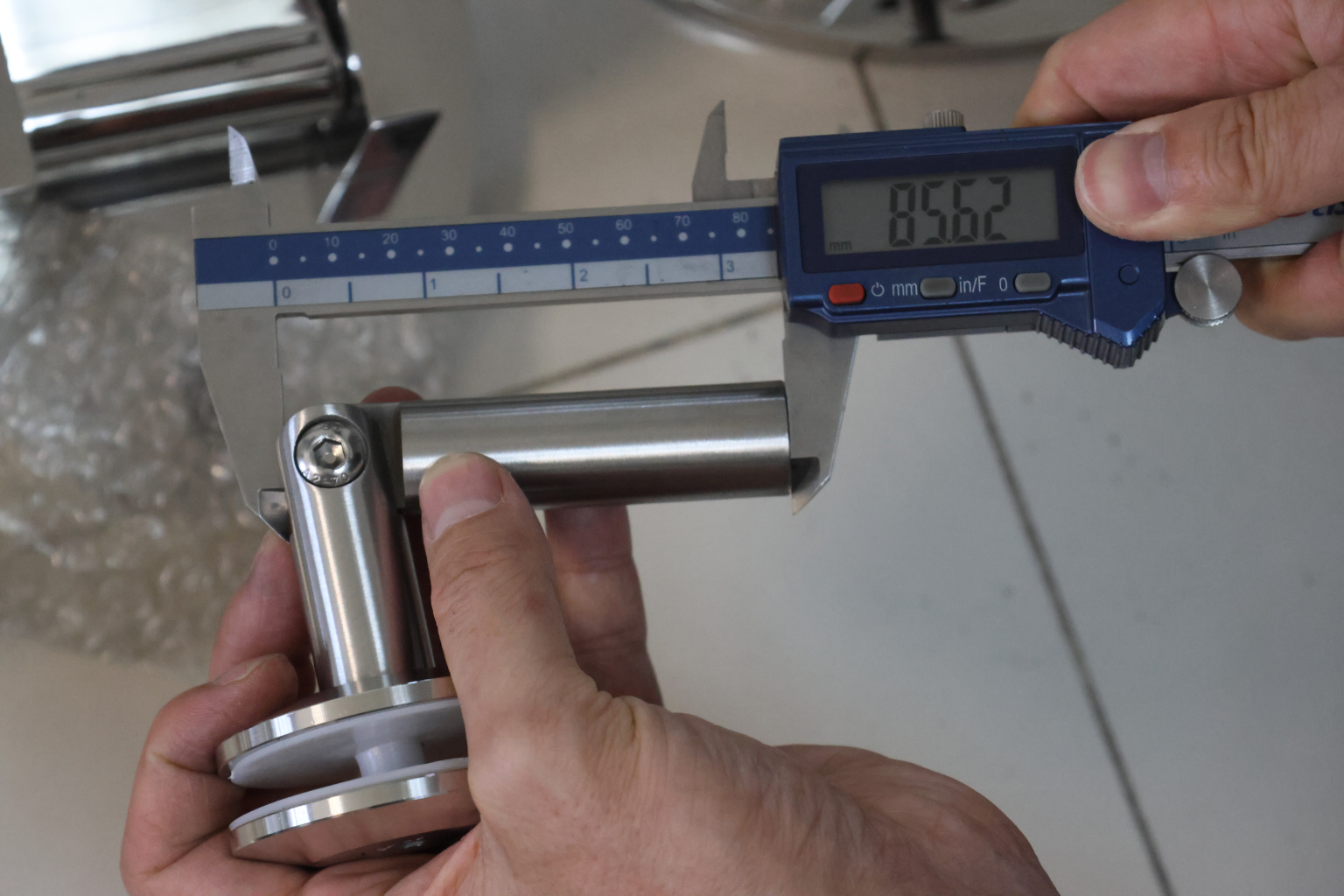 узел крепления стекла к стене, поверхность шлифованная, марка стали AISI 304.