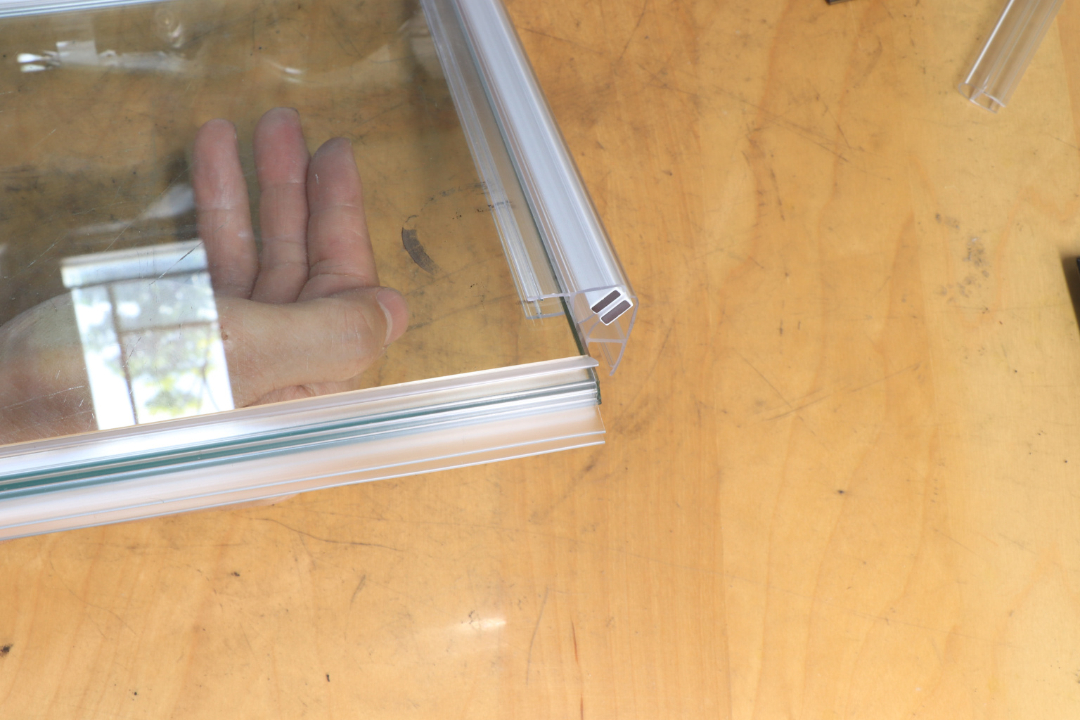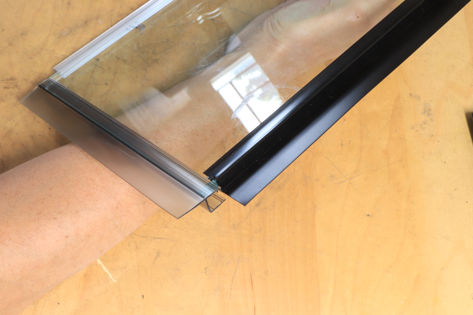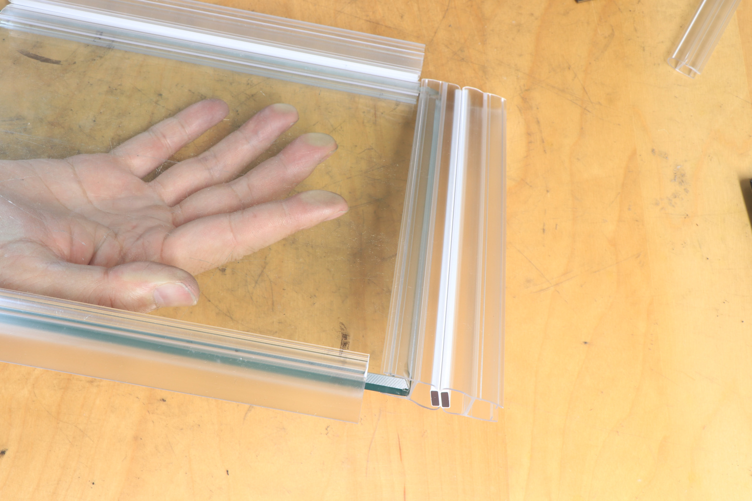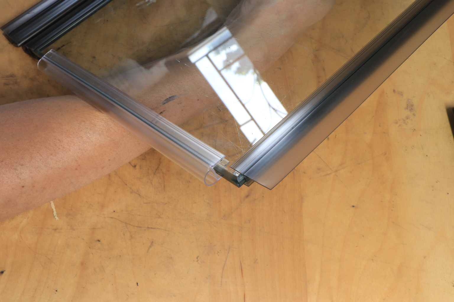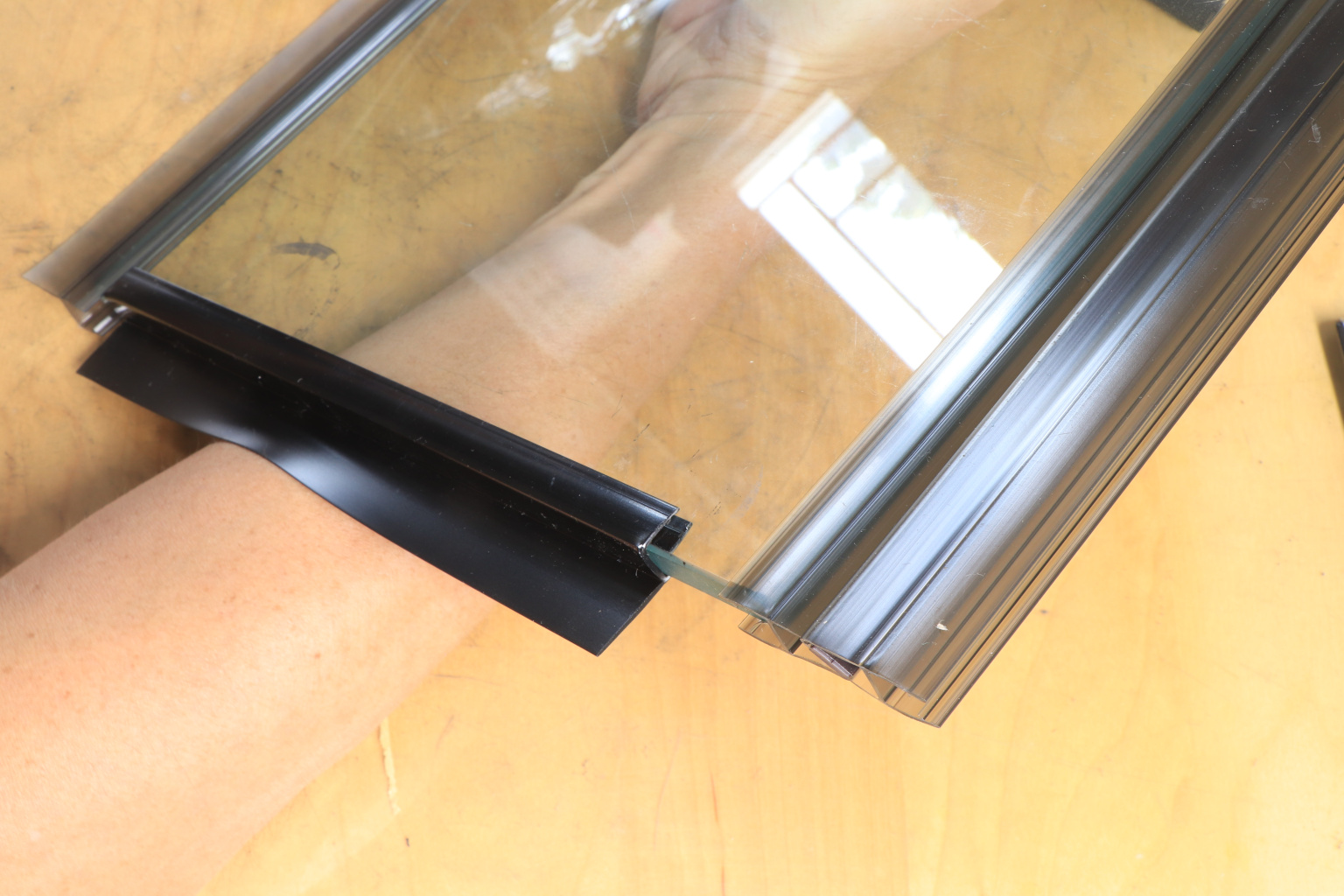 За счет своих свойств (стойкость к щелочам, минеральным маслам и многим кислотам) прекрасно подходит для крепления стеклянного листа по всему периметру. Применение этого комплекта гарантирует отсутствие течи в вертикальной части конструкции. Уплотнитель из комплекта применим в сочетании со стеклом толщиной до 8 мм и углом в плане до 135.