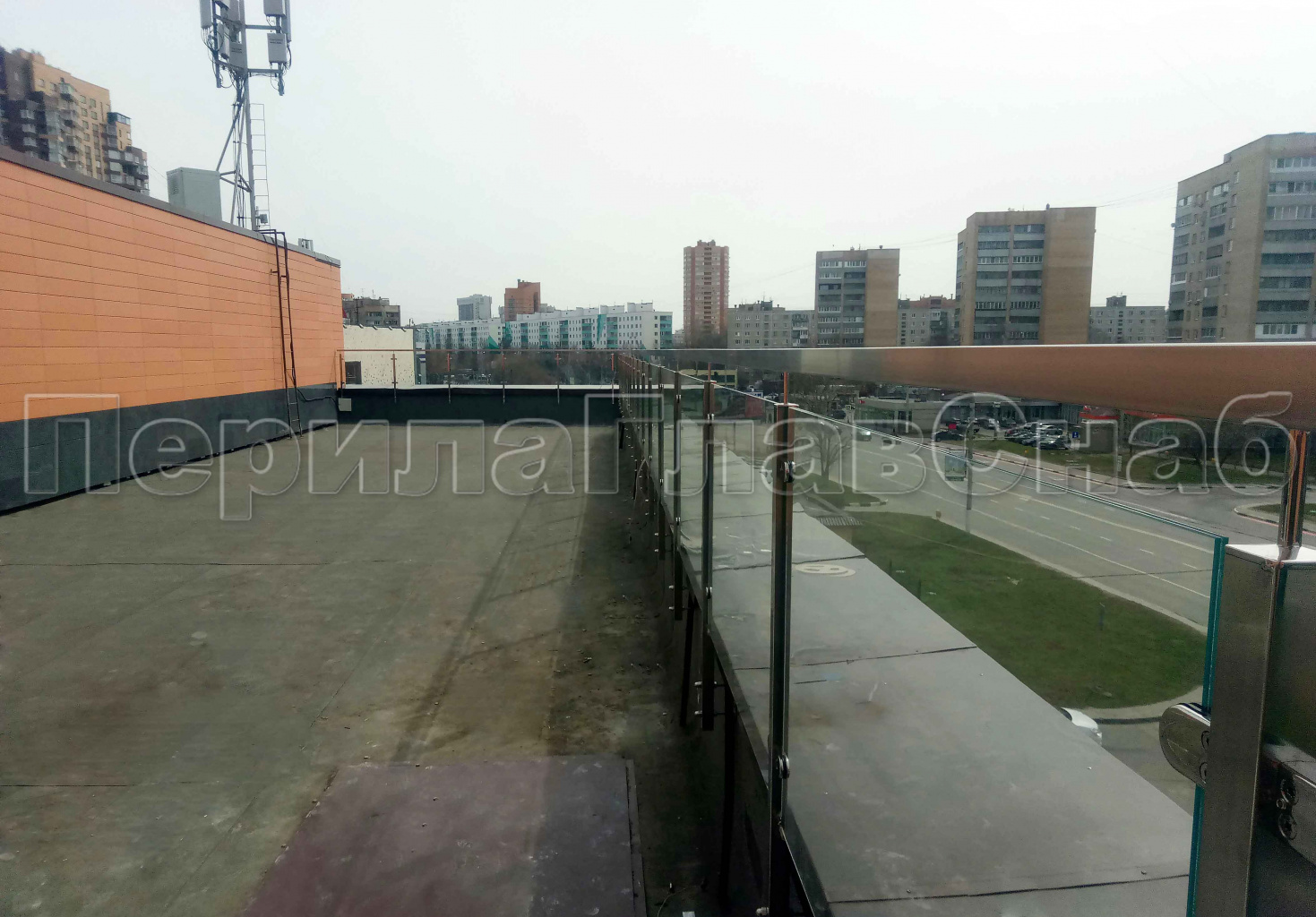 Кровельное ограждение из нержавеющей стали со стеклами в Уфе. Готовые проекты ПерилаГлавСнаб