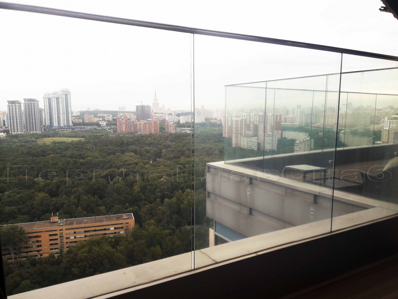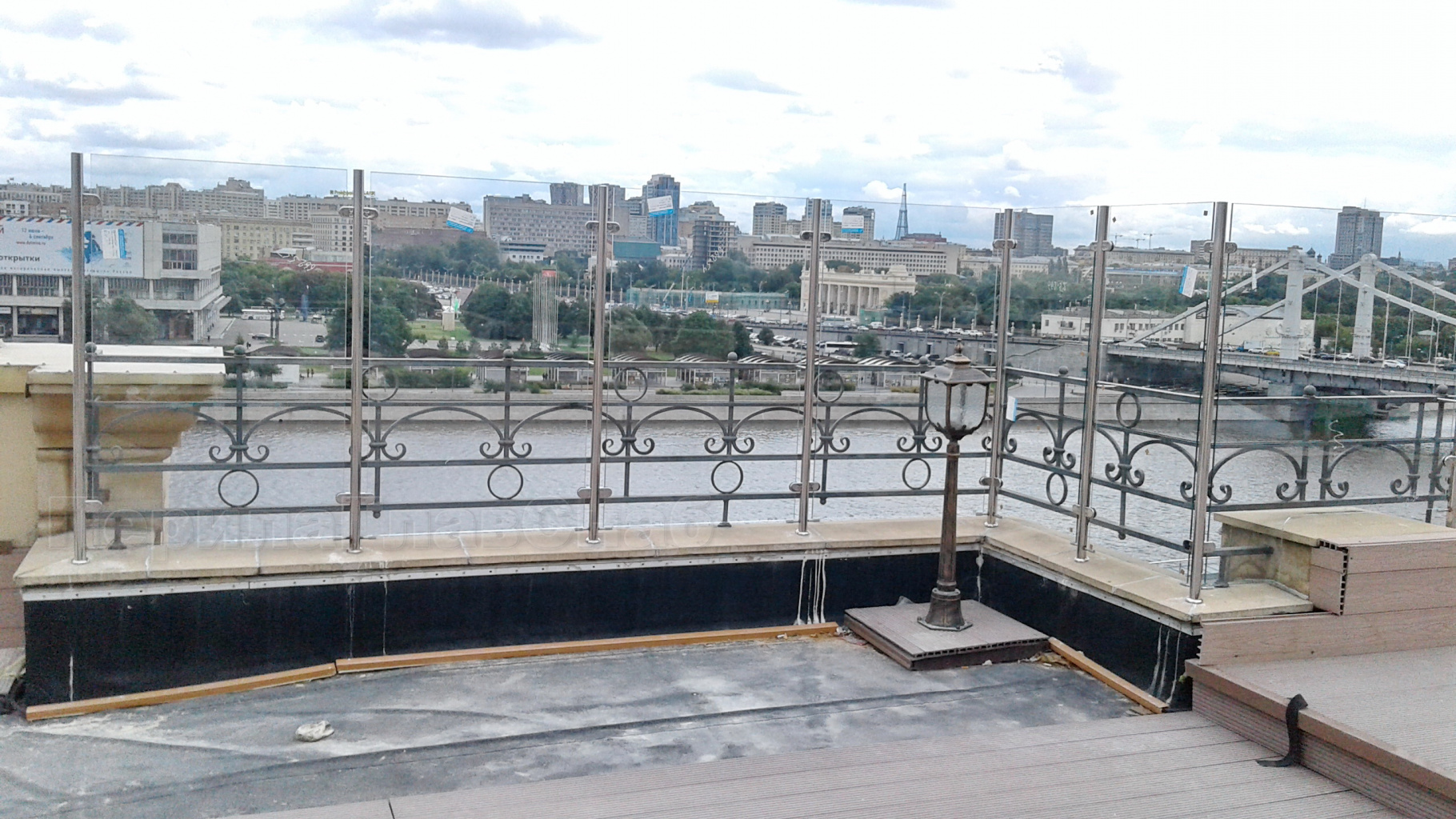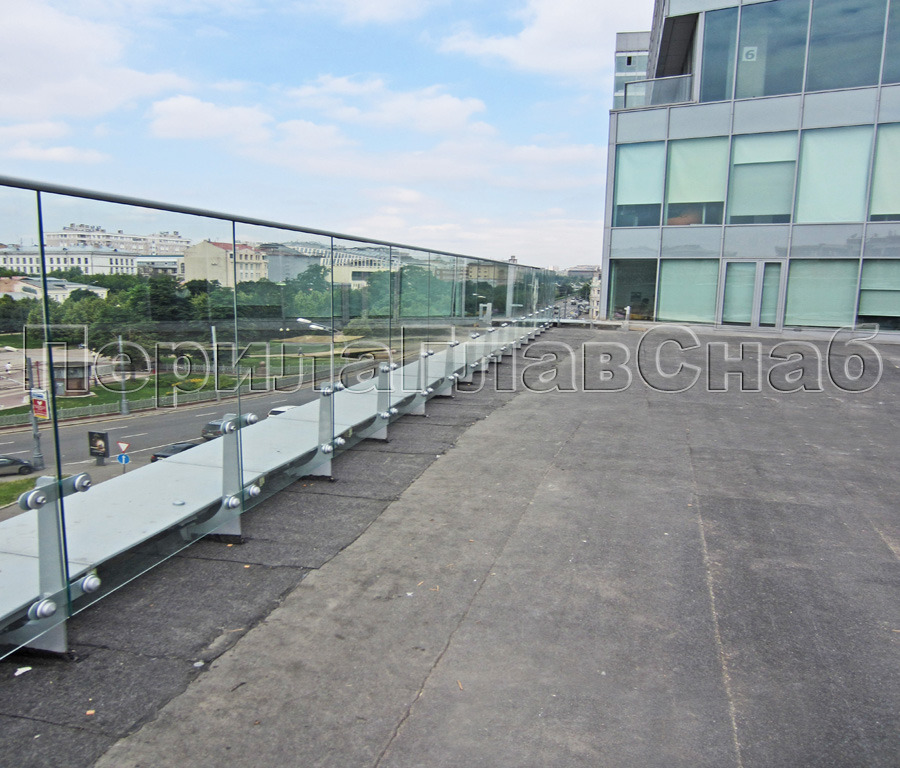 Ограждение для кровли на несущем стекле и министойках