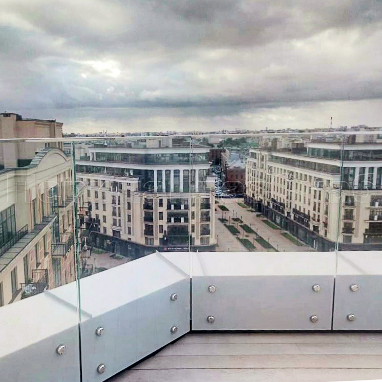 Ограждение на несущем стекле с торцевым креплением для крыш в Уфе. Готовые проекты ПерилаГлавСнаб