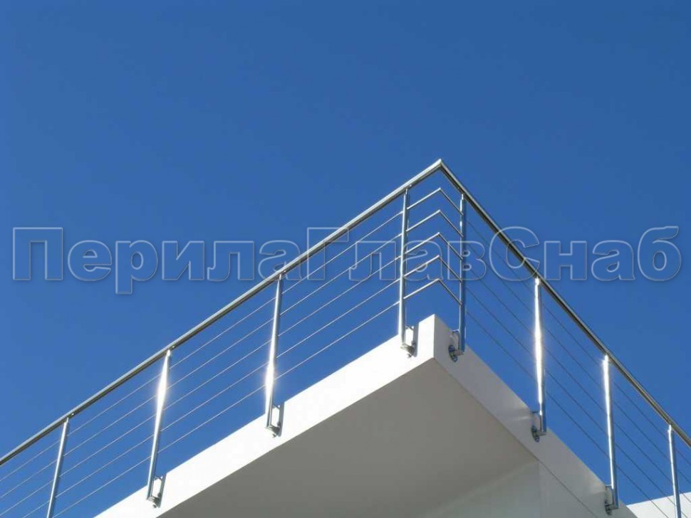 Ограждения из нержавейки. Заполнение из 7ми тросиков + декоративные наконечники