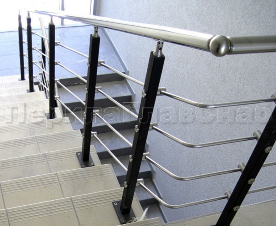 Ограждения с квадратным поручнем со стойками в каждую ступень без ригелей