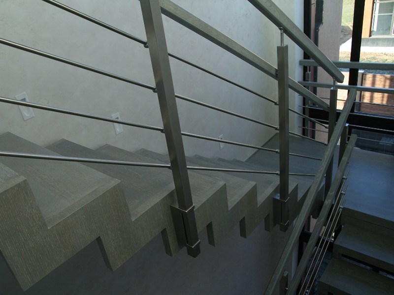 Записаться на встречу Два ригеля на держателях, квадратный поручень и круглые стойки